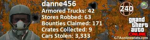 <a href="http://GTAonlinestats.com/showplayer/danne456"><img src="http://GTAonlinestats.com/crimesignature/danne456/sig.png" alt="danne456" border="0" /></a>