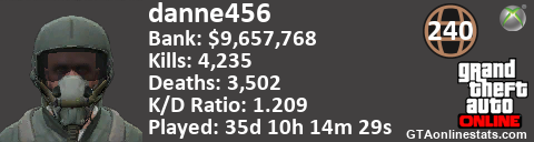 [URL=http://GTAonlinestats.com/showplayer/danne456][IMG]http://GTAonlinestats.com/signature/danne456/sig.png[/IMG][/URL]