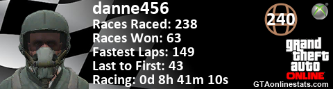 [URL=http://GTAonlinestats.com/showplayer/danne456][IMG]http://GTAonlinestats.com/racesignature/danne456/sig.png[/IMG][/URL]