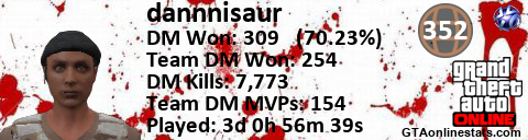 [URL=http://GTAonlinestats.com/showplayer/dannnisaur][IMG]http://GTAonlinestats.com/dmsignature/dannnisaur/sig.png[/IMG][/URL]