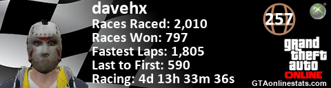 <a href="http://GTAonlinestats.com/showplayer/davehx"><img src="http://GTAonlinestats.com/racesignature/davehx/sig.png" alt="davehx" border="0" /></a>