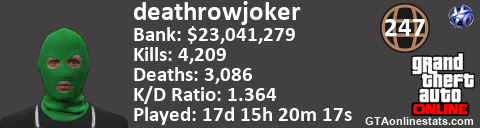 <a href="http://GTAonlinestats.com/showplayer/deathrowjoker"><img src="http://GTAonlinestats.com/signature/deathrowjoker/sig.png" alt="deathrowjoker" border="0" /></a>