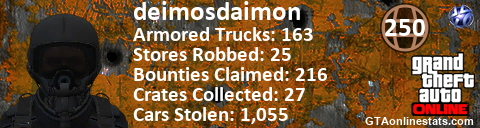 [URL=http://GTAonlinestats.com/showplayer/deimosdaimon][IMG]http://GTAonlinestats.com/crimesignature/deimosdaimon/sig.png[/IMG][/URL]