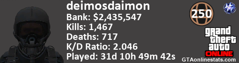 [URL=http://GTAonlinestats.com/showplayer/deimosdaimon][IMG]http://GTAonlinestats.com/dmsignature/deimosdaimon/sig.png[/IMG][/URL]