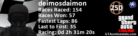 [URL=http://GTAonlinestats.com/showplayer/deimosdaimon][IMG]http://GTAonlinestats.com/racesignature/deimosdaimon/sig.png[/IMG][/URL]