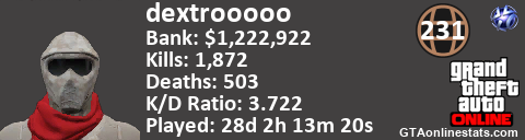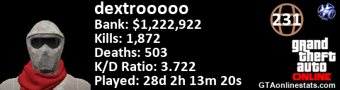 <a href="http://GTAonlinestats.com/showplayer/dextrooooo"><img src="http://GTAonlinestats.com/signature/dextrooooo/sig.png" alt="dextrooooo" border="0" /></a>