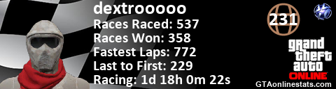 <a href="http://GTAonlinestats.com/showplayer/dextrooooo"><img src="http://GTAonlinestats.com/racesignature/dextrooooo/sig.png" alt="dextrooooo" border="0" /></a>