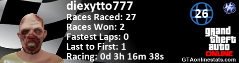 [URL=http://GTAonlinestats.com/showplayer/diexytto777][IMG]http://GTAonlinestats.com/racesignature/diexytto777/sig.png[/IMG][/URL]