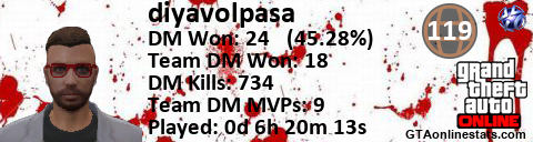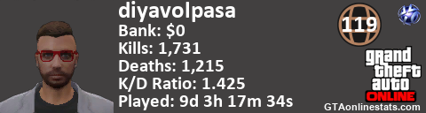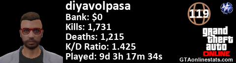 [URL=http://GTAonlinestats.com/showplayer/diyavolpasa][IMG]http://GTAonlinestats.com/dmsignature/diyavolpasa/sig.png[/IMG][/URL]