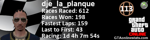 <a href="http://GTAonlinestats.com/showplayer/dje_la_planque"><img src="http://GTAonlinestats.com/racesignature/dje_la_planque/sig.png" alt="dje_la_planque" border="0" /></a>