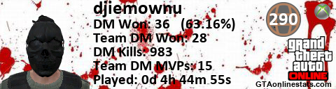 [URL=http://GTAonlinestats.com/showplayer/djiemownu][IMG]http://GTAonlinestats.com/dmsignature/djiemownu/sig.png[/IMG][/URL]