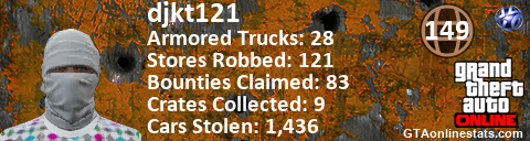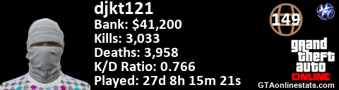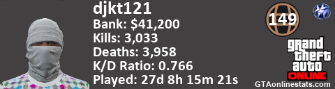 <a href="http://GTAonlinestats.com/showplayer/djkt121"><img src="http://GTAonlinestats.com/signature/djkt121/sig.png" alt="djkt121" border="0" /></a>