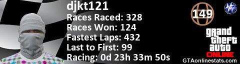 [URL=http://GTAonlinestats.com/showplayer/djkt121][IMG]http://GTAonlinestats.com/racesignature/djkt121/sig.png[/IMG][/URL]