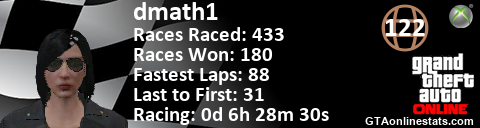 [URL=http://GTAonlinestats.com/showplayer/dmath1][IMG]http://GTAonlinestats.com/racesignature/dmath1/sig.png[/IMG][/URL]