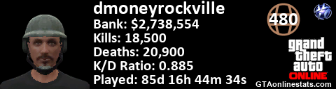 <a href="http://GTAonlinestats.com/showplayer/dmoneyrockville"><img src="http://GTAonlinestats.com/signature/dmoneyrockville/sig.png" alt="dmoneyrockville" border="0" /></a>