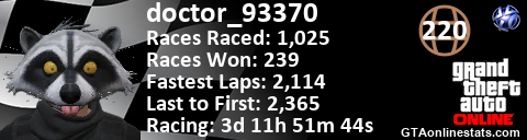 [URL=http://GTAonlinestats.com/showplayer/doctor_93370][IMG]http://GTAonlinestats.com/racesignature/doctor_93370/sig.png[/IMG][/URL]