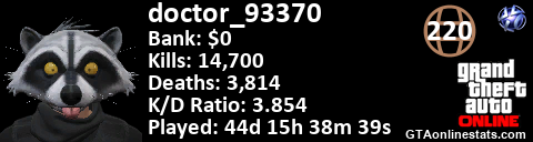 [URL=http://GTAonlinestats.com/showplayer/doctor_93370][IMG]http://GTAonlinestats.com/dmsignature/doctor_93370/sig.png[/IMG][/URL]