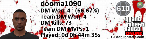 <a href="http://GTAonlinestats.com/showplayer/dooma1090"><img src="http://GTAonlinestats.com/randomsignature/dooma1090/sig.png" alt="dooma1090" border="0" /></a>