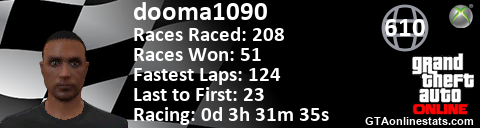 <a href="http://GTAonlinestats.com/showplayer/dooma1090"><img src="http://GTAonlinestats.com/racesignature/dooma1090/sig.png" alt="dooma1090" border="0" /></a>
