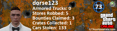 <a href="http://GTAonlinestats.com/showplayer/dorse123"><img src="http://GTAonlinestats.com/randomsignature/dorse123/sig.png" alt="Dorse123" border="0" /></a>
