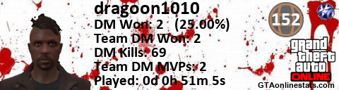 [URL=http://GTAonlinestats.com/showplayer/dragoon1010][IMG]http://GTAonlinestats.com/dmsignature/dragoon1010/sig.png[/IMG][/URL]