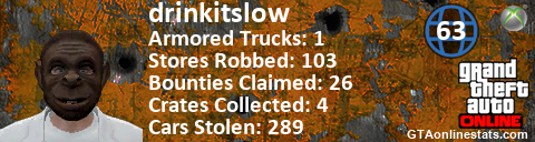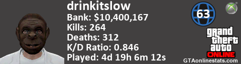 <a href="http://GTAonlinestats.com/showplayer/drinkitslow"><img src="http://GTAonlinestats.com/signature/drinkitslow/sig.png" alt="drinkitslow" border="0" /></a>