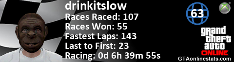 <a href="http://GTAonlinestats.com/showplayer/drinkitslow"><img src="http://GTAonlinestats.com/racesignature/drinkitslow/sig.png" alt="drinkitslow" border="0" /></a>