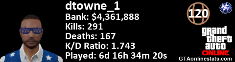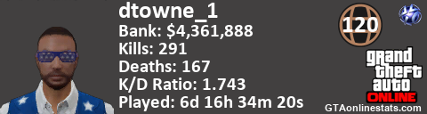 <a href="http://GTAonlinestats.com/showplayer/dtowne_1"><img src="http://GTAonlinestats.com/randomsignature/dtowne_1/sig.png" alt="dtowne_1" border="0" /></a>