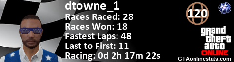 [URL=http://GTAonlinestats.com/showplayer/dtowne_1][IMG]http://GTAonlinestats.com/racesignature/dtowne_1/sig.png[/IMG][/URL]