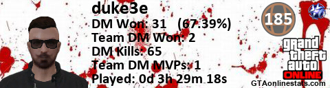[URL=http://GTAonlinestats.com/showplayer/duke3e][IMG]http://GTAonlinestats.com/dmsignature/duke3e/sig.png[/IMG][/URL]