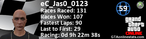 [URL=http://GTAonlinestats.com/showplayer/eC_Jas0_0123/3][IMG]http://GTAonlinestats.com/racesignature/eC_Jas0_0123/3/sig.png[/IMG][/URL]
