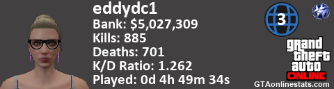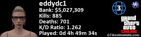 <a href="http://GTAonlinestats.com/showplayer/eddydc1/2"><img src="http://GTAonlinestats.com/greysignature/eddydc1/2/sig.png" alt="eddydc1" border="0" /></a>