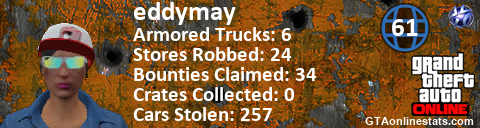 <a href="http://GTAonlinestats.com/showplayer/eddymay"><img src="http://GTAonlinestats.com/crimesignature/eddymay/sig.png" alt="eddymay" border="0" /></a>