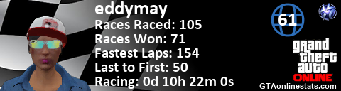 <a href="http://GTAonlinestats.com/showplayer/eddymay"><img src="http://GTAonlinestats.com/racesignature/eddymay/sig.png" alt="eddymay" border="0" /></a>