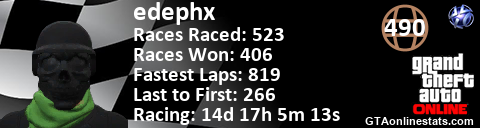 [URL=http://GTAonlinestats.com/showplayer/edephx][IMG]http://GTAonlinestats.com/racesignature/edephx/sig.png[/IMG][/URL]