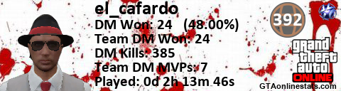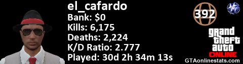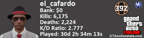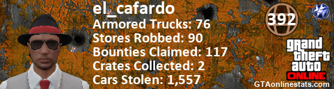 [URL=http://GTAonlinestats.com/showplayer/el_cafardo][IMG]http://GTAonlinestats.com/signature/el_cafardo/sig.png[/IMG][/URL]