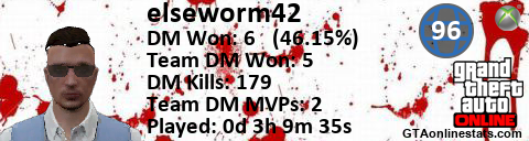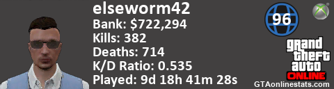 <a href="http://GTAonlinestats.com/showplayer/elseworm42"><img src="http://GTAonlinestats.com/dmsignature/elseworm42/sig.png" alt="elseworm42" border="0" /></a>