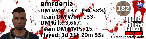 [URL=http://GTAonlinestats.com/showplayer/emrdeniz][IMG]http://GTAonlinestats.com/dmsignature/emrdeniz/sig.png[/IMG][/URL]