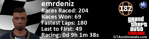 [URL=http://GTAonlinestats.com/showplayer/emrdeniz][IMG]http://GTAonlinestats.com/racesignature/emrdeniz/sig.png[/IMG][/URL]