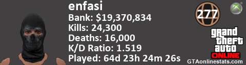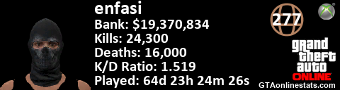 [URL=http://GTAonlinestats.com/showplayer/enfasi][IMG]http://GTAonlinestats.com/randomsignature/enfasi/sig.png[/IMG][/URL]