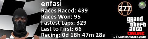 [URL=http://GTAonlinestats.com/showplayer/enfasi][IMG]http://GTAonlinestats.com/racesignature/enfasi/sig.png[/IMG][/URL]