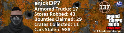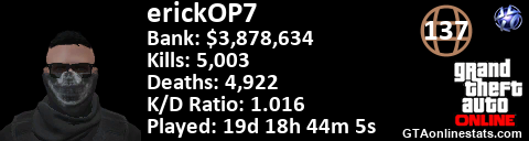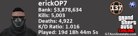 [URL=http://GTAonlinestats.com/showplayer/erickOP7][IMG]http://GTAonlinestats.com/randomsignature/erickOP7/sig.png[/IMG][/URL]
