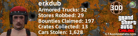 [URL=http://GTAonlinestats.com/showplayer/erkdub][IMG]http://GTAonlinestats.com/signature/erkdub/sig.png[/IMG][/URL]