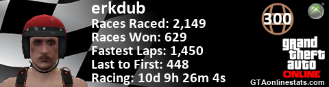 [URL=http://GTAonlinestats.com/showplayer/erkdub][IMG]http://GTAonlinestats.com/racesignature/erkdub/sig.png[/IMG][/URL]