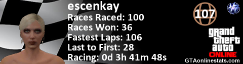 [URL=http://GTAonlinestats.com/showplayer/escenkay][IMG]http://GTAonlinestats.com/racesignature/escenkay/sig.png[/IMG][/URL]