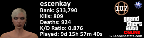 <a href="http://GTAonlinestats.com/showplayer/escenkay"><img src="http://GTAonlinestats.com/randomsignature/escenkay/sig.png" alt="escenkay" border="0" /></a>