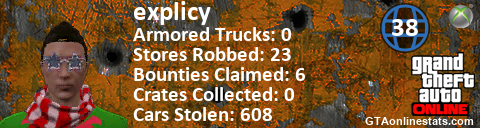 [URL=http://GTAonlinestats.com/showplayer/explicy][IMG]http://GTAonlinestats.com/signature/explicy/sig.png[/IMG][/URL]