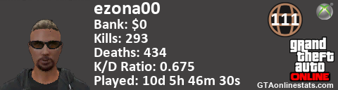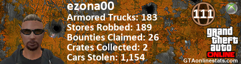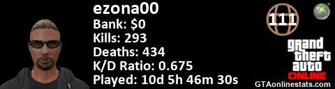 <a href="http://GTAonlinestats.com/showplayer/ezona00"><img src="http://GTAonlinestats.com/randomsignature/ezona00/sig.png" alt="ezona00" border="0" /></a>