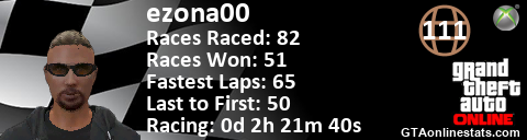 [URL=http://GTAonlinestats.com/showplayer/ezona00][IMG]http://GTAonlinestats.com/racesignature/ezona00/sig.png[/IMG][/URL]