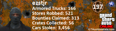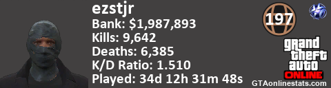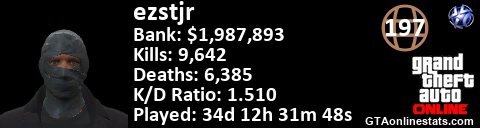 <a href="http://GTAonlinestats.com/showplayer/ezstjr"><img src="http://GTAonlinestats.com/dmsignature/ezstjr/sig.png" alt="ezstjr" border="0" /></a>